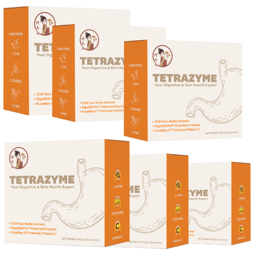 TETRAZYME四神酵融合中医四神方智慧与现代酵素科技,专为健脾养胃研发,同步改善消化代谢、增强吸收,并由内调理肤质,帮助缓解脾虚导致的暗沉、痘痘等问题,实现健康脾胃+自然美肌的双重效果。