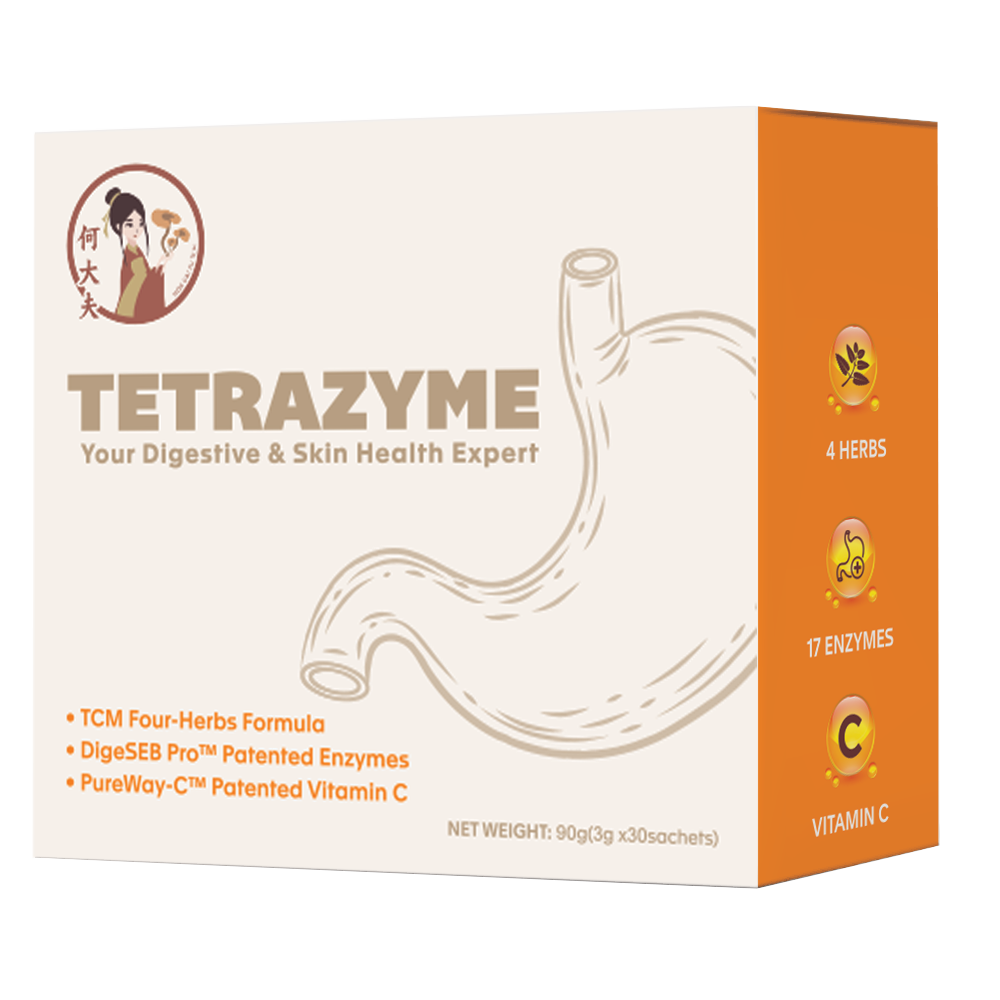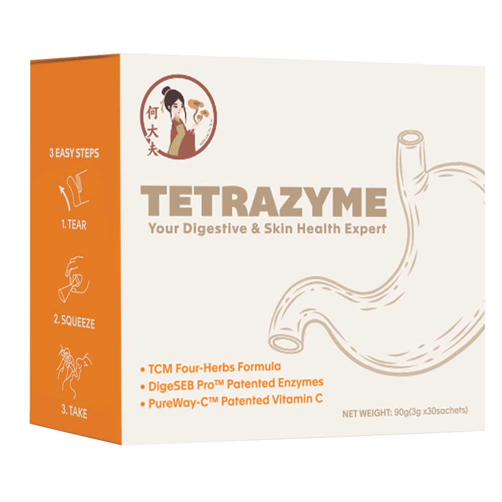 TETRAZYME四神酵融合中医四神方智慧与现代酵素科技,专为健脾养胃研发,同步改善消化代谢、增强吸收,并由内调理肤质,帮助缓解脾虚导致的暗沉、痘痘等问题,实现健康脾胃+自然美肌的双重效果。